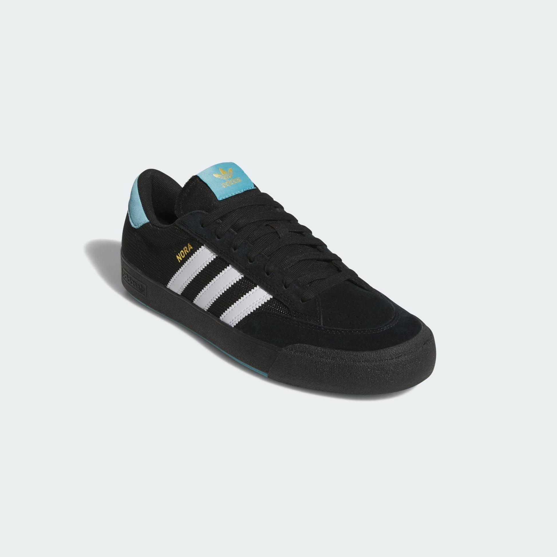 With the adidas Nora, skater Nora Vasconcellos reimagines vintage sneakers in a sleek, technical skate version. Its suede and textile upper combines durability and breathability, while the double-layered toe and cupsole ensure protection and durability on the board. Featuring a gold Trefoil logo and a wavy heel, it blends heritage and personal identity for a retro silhouette perfectly suited to the skate lifestyle.