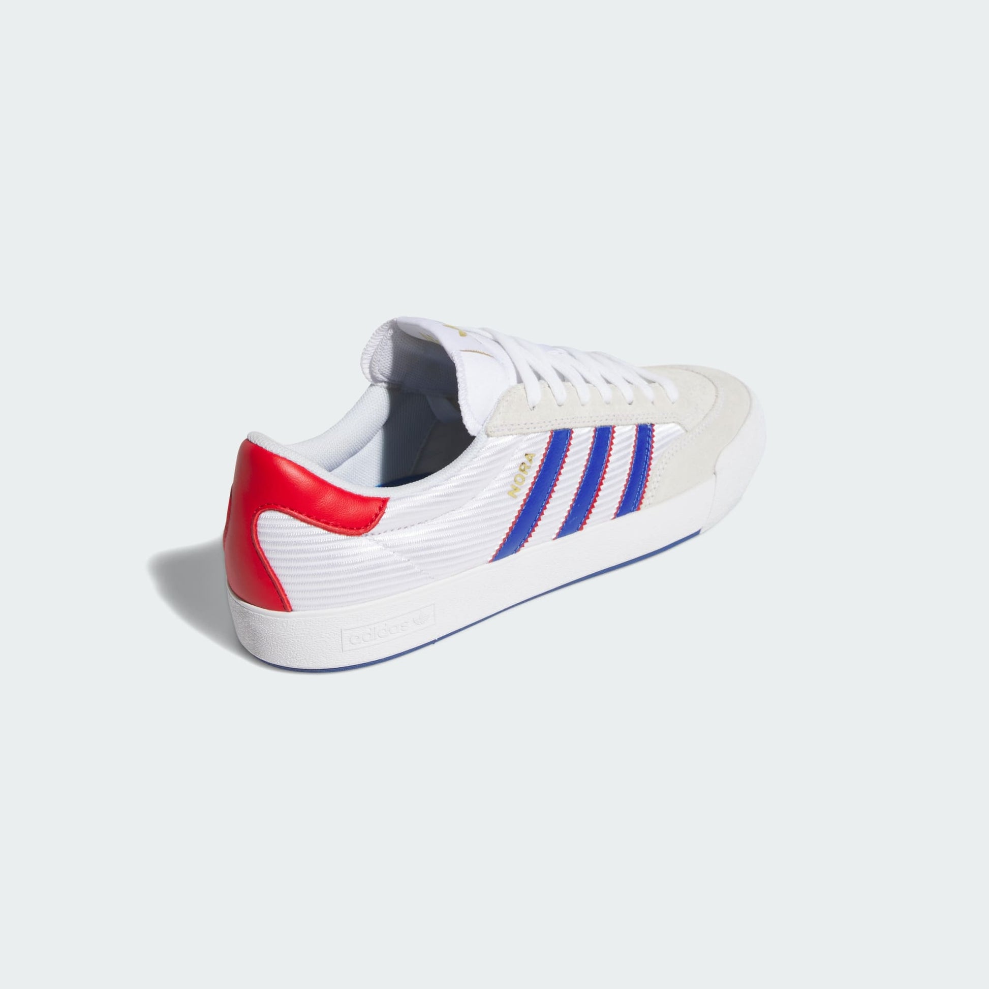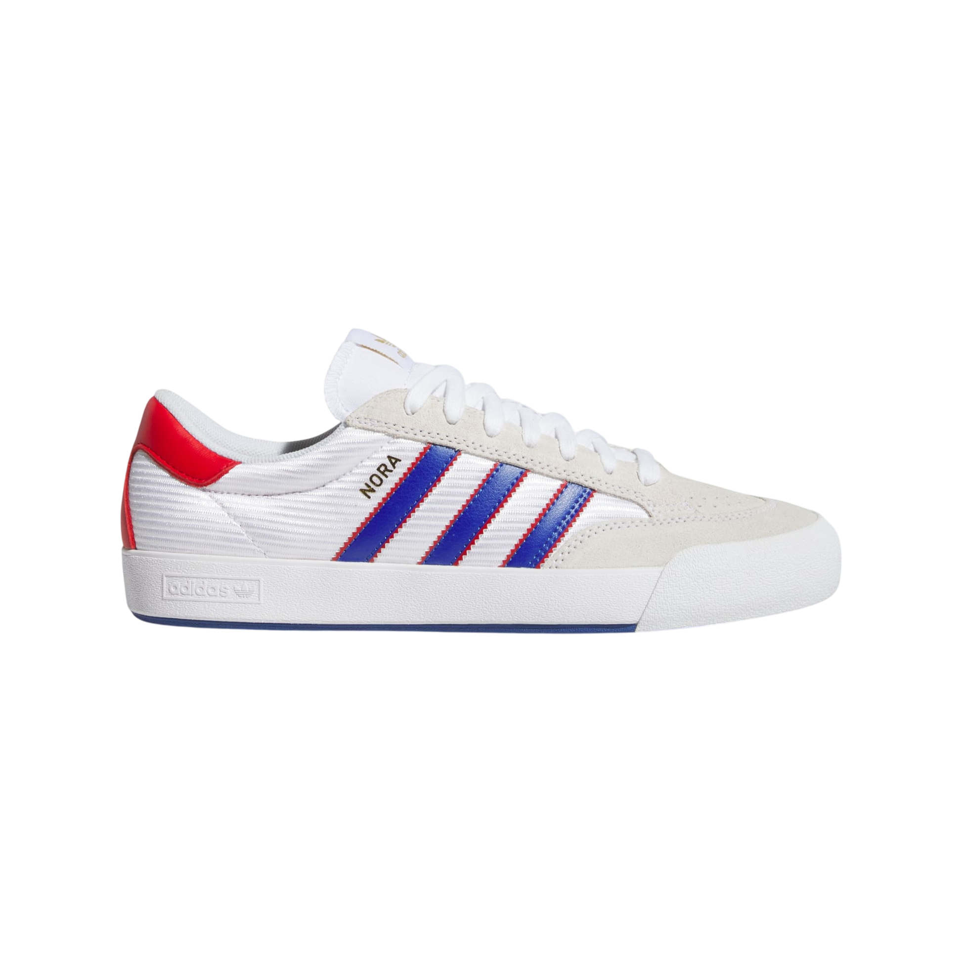 With the adidas Nora, skater Nora Vasconcellos reimagines vintage sneakers in a sleek, technical skate version. Its suede and textile upper combines durability and breathability, while the double-layered toe and cupsole ensure protection and durability on the board. Featuring a gold Trefoil logo and a wavy heel, it blends heritage and personal identity for a retro silhouette perfectly suited to the skate lifestyle.