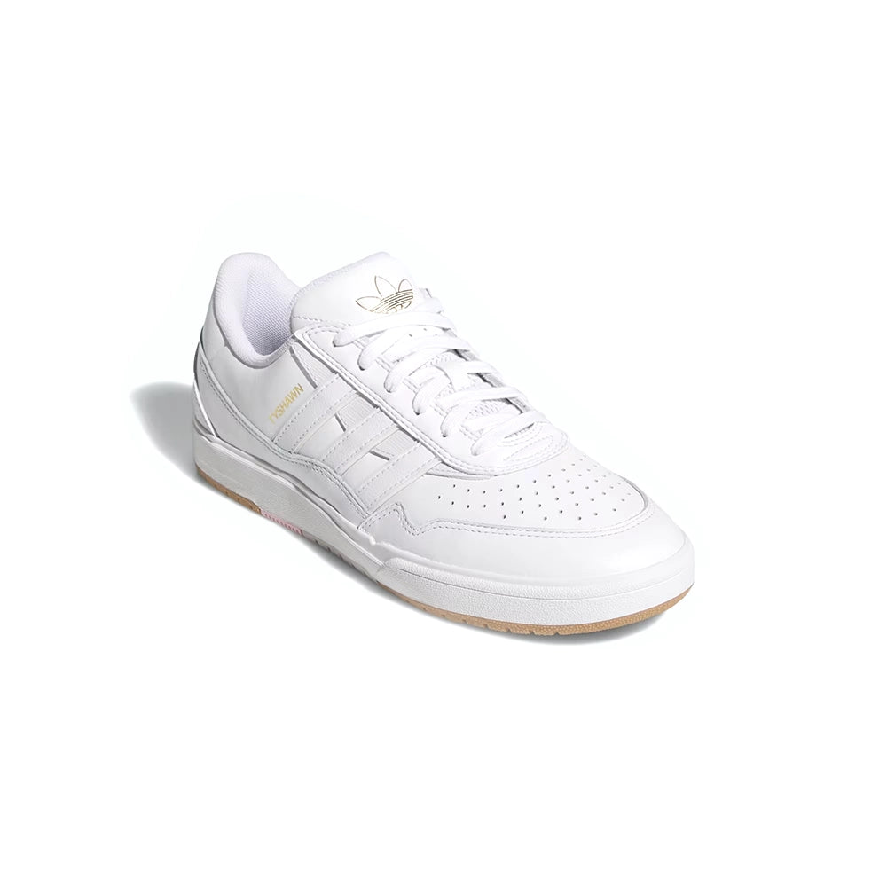 Sleek and functional, the adidas Tyshawn II (FTWWHT/FTWWHT/GUM4) reinterprets football codes through the lens of skateboarding. Inspired by Tyshawn Jones' favorite silhouettes, it combines a sleek design with a durable cupsole construction. Its leather and synthetic upper, dual-layer forefoot, and multi-directional outsole ensure comfort, support, and cushioning for every session. A shoe built for performance without compromising on style.