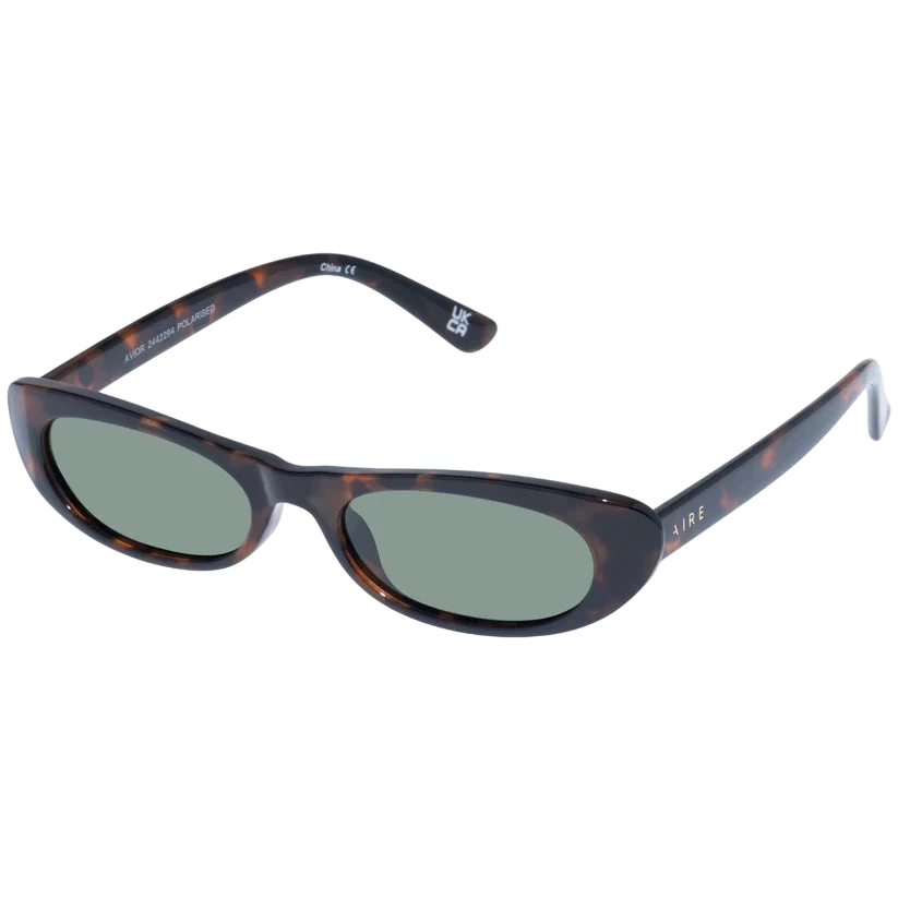 Dark tortoiseshell frame with monochrome khaki polarized lenses.