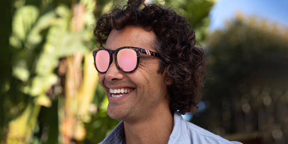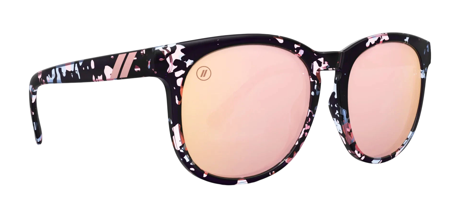 " Mamba Queen " strikes the senses with a look that's downright deadly. These round cat-eye sunglasses are the height of style, enhanced by a tortoiseshell frame with a purple, pink, and blue floral print. The polarized pink lenses, like a Pacific sunset, protect you from glare, and their lightweight design flatters oval, square, and heart-shaped faces. Wear them with regal confidence!
