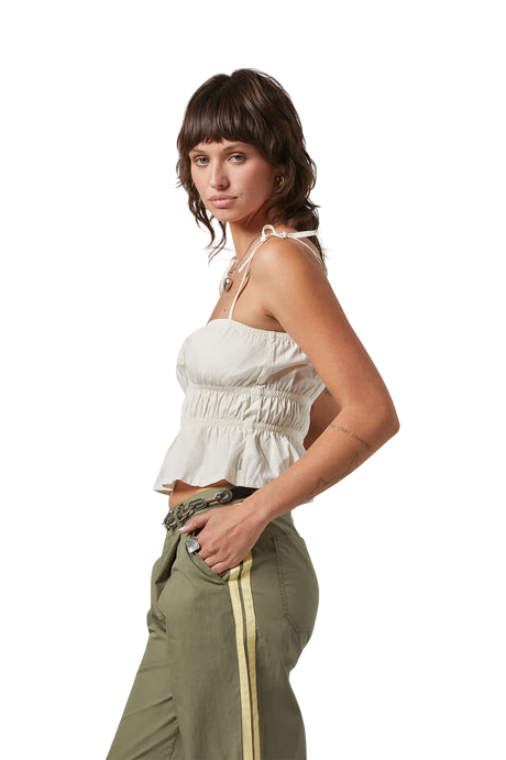 Summery allure with a retro touch: the Eden Smocked top reinterprets the classic tank top with a bold style. Its smocked bodice flatters the silhouette, while the adjustable straps ensure tailored comfort. Crafted from a breathable cotton blend, this 30 cm crop top can be worn alone or layered. Easy to mix and match, it adapts to all your desires, from casual denim to more dressed-up looks.