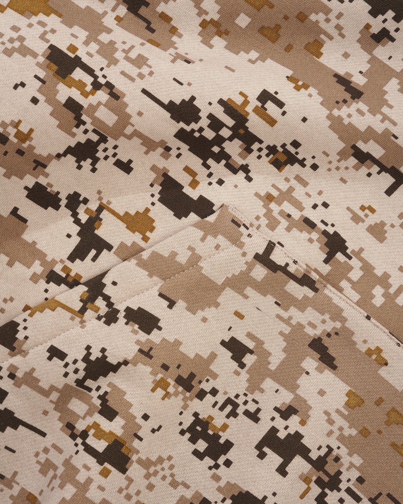 Cash Only Logo camouflage hoodie, made from a heavyweight (380gsm) cotton/polyester blend. Featuring a zigzag-stitched cotton twill applique on the front, an all-over print, and a garment wash for a soft, vintage feel.