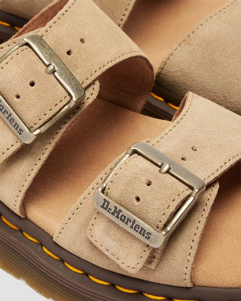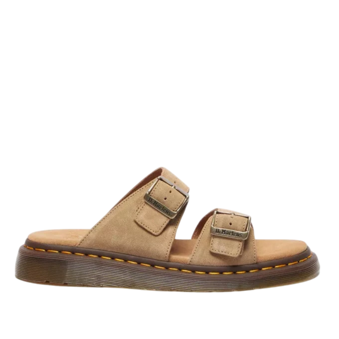 Josef is a versatile sandal, ideal for any occasion. Easy to slip on and easy to match, it features two adjustable buckles and a suede-covered foam insole for optimal summer comfort. The edge of the sole is marked with DM's classic grooves and secured with a yellow welt.
