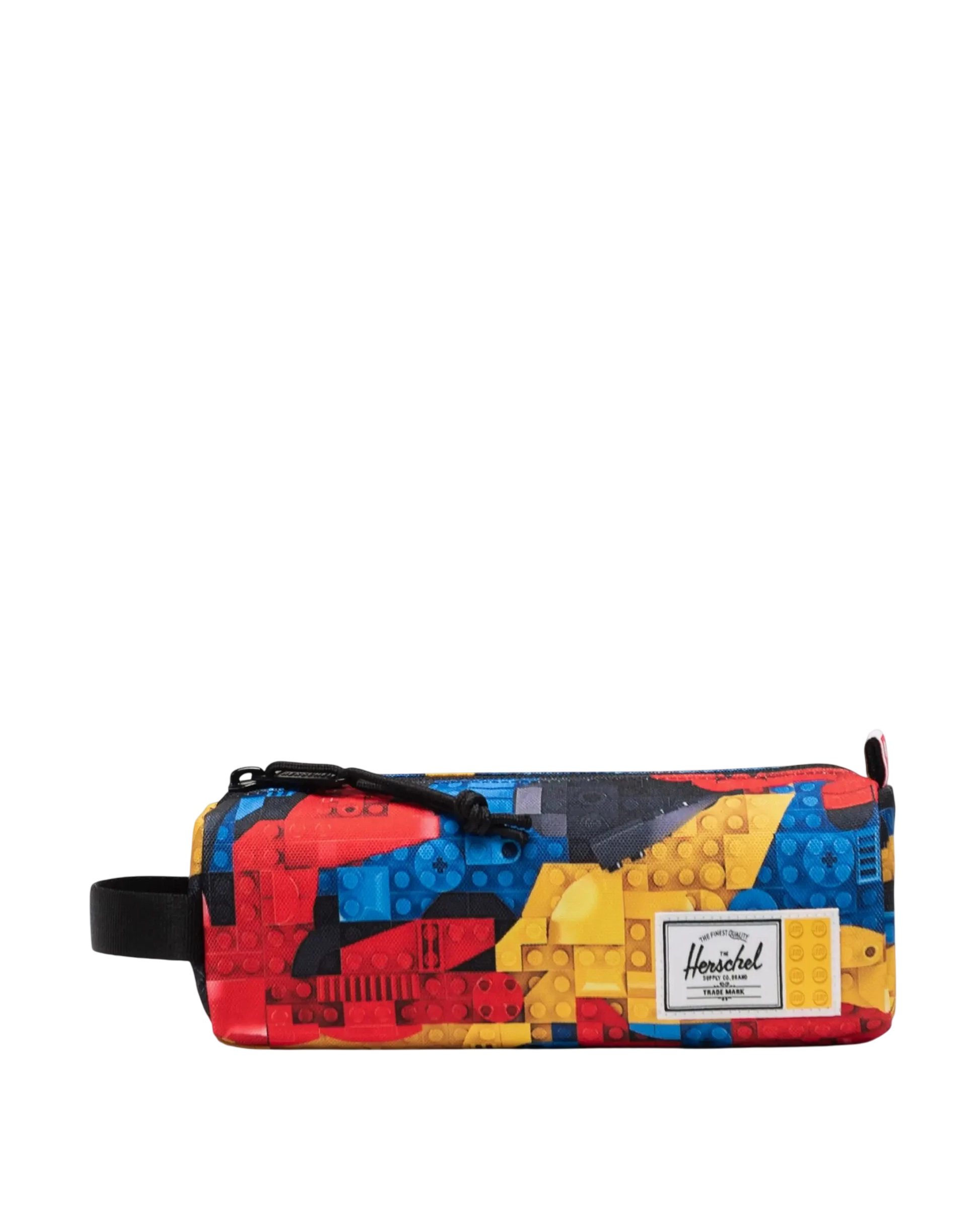 Part of the exclusive Herschel x LEGO® collaboration, this limited-edition Settlement pencil case combines functionality with iconic design. Featuring custom LEGO® prints, a matching lining, a zip closure with a knotted drawstring, and a convenient side handle, it slips easily into a bag or can be carried by hand between classes.
