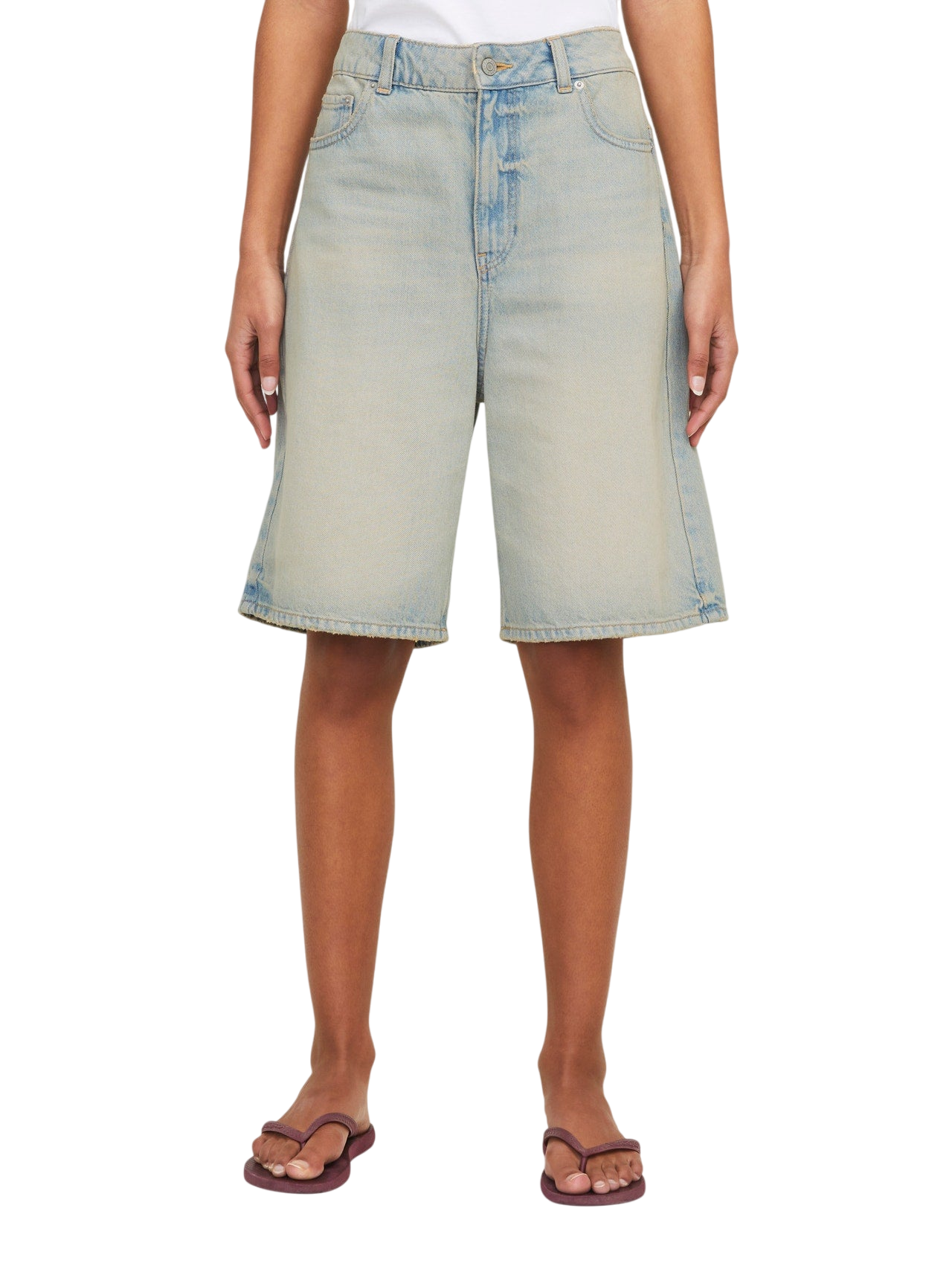 Show off a laid-back, timeless style with these denim essentials. Designed for comfort and versatility, these loose-fitting denim shorts are perfect for any everyday occasion. Their stonewashed finish gives them a naturally worn-in look, while the mid-rise waist and knee-length design ensure a balanced silhouette. Featuring functional pockets at the front, back, and a coin pocket, they're an easy addition to any modern wardrobe.