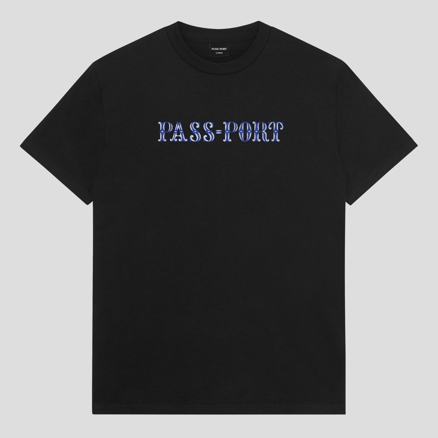 Part of the Range 45 collection, Pass~Port's Glint T-shirt in black offers a striking aesthetic with its screen-printed prints on the front and back. Crafted from 100% cotton with a weight of 220 g/m², it adopts the brand's iconic relaxed fit. A graphic and assertive piece, cut for the street.