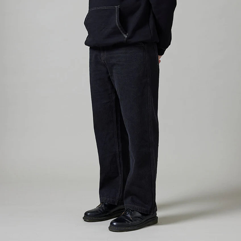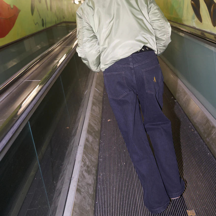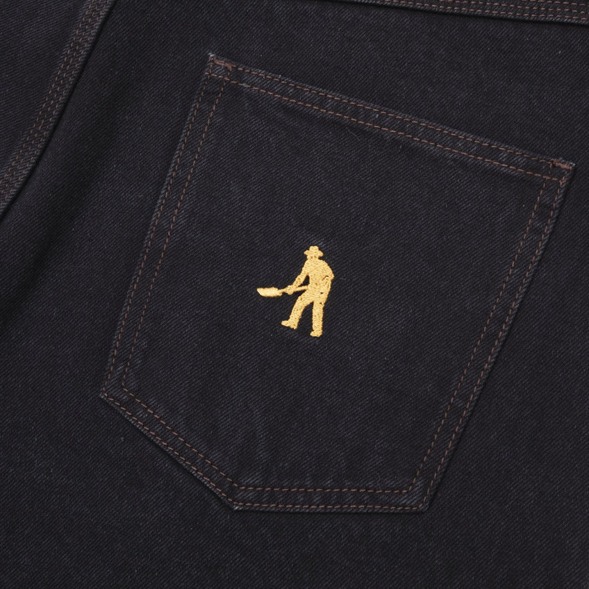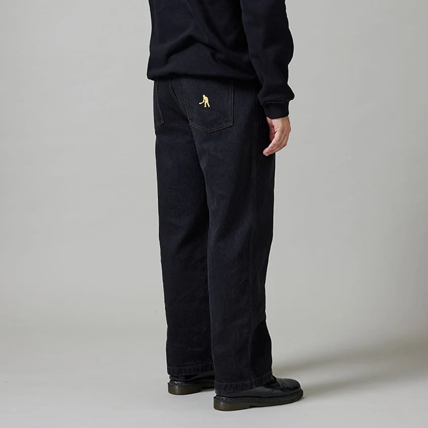 Part of the No. 39 range, the black Pass~Port Workers Club jeans embody the strength of raw denim with a touch of signature style. Crafted from 16 oz. 100% cotton rigid denim and reinforced with a fine thread, they combine strength and character. Their straight cut is enhanced by excavator embroidery on the back pocket and a leather waistband label, affirming their workwear inspiration.