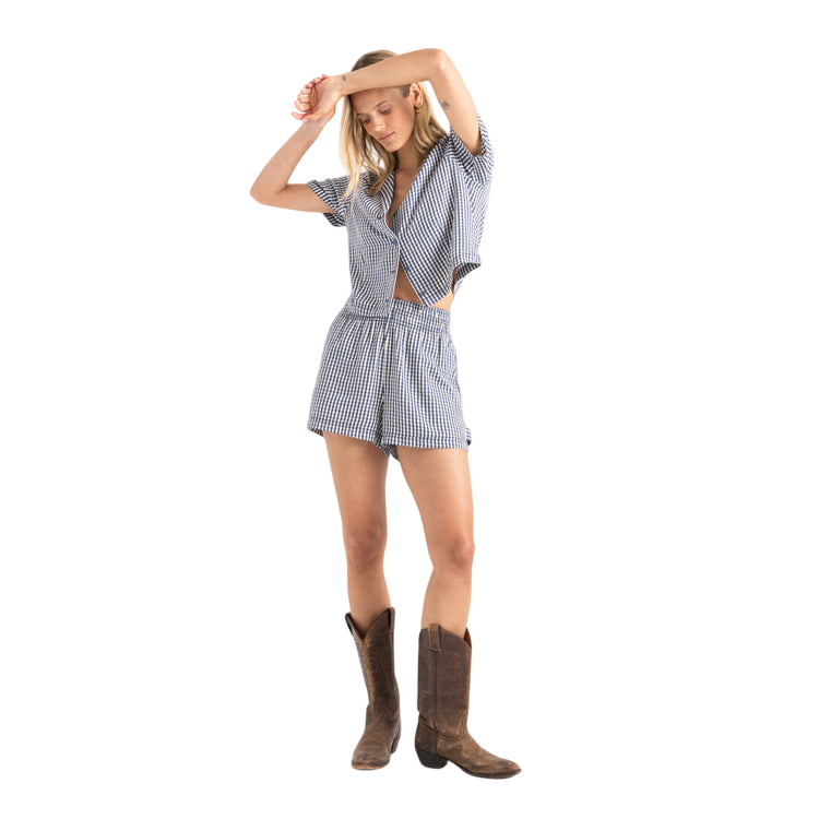 At the intersection of style and function, Roark's Paseo shorts embody meticulous craftsmanship and a sustainable approach. Crafted from breathable, eco-friendly fabric, they offer a soft feel and remarkable comfort for summer days. The yarn-dyed gingham check pattern adds timeless elegance, enhanced by subtle piping details. Their elastic waistband ensures a flexible fit, while zippered back pockets secure your belongings. Practical, they also feature utility pockets and a tool loop—ideal for alternating between outdoor exploration and relaxation.