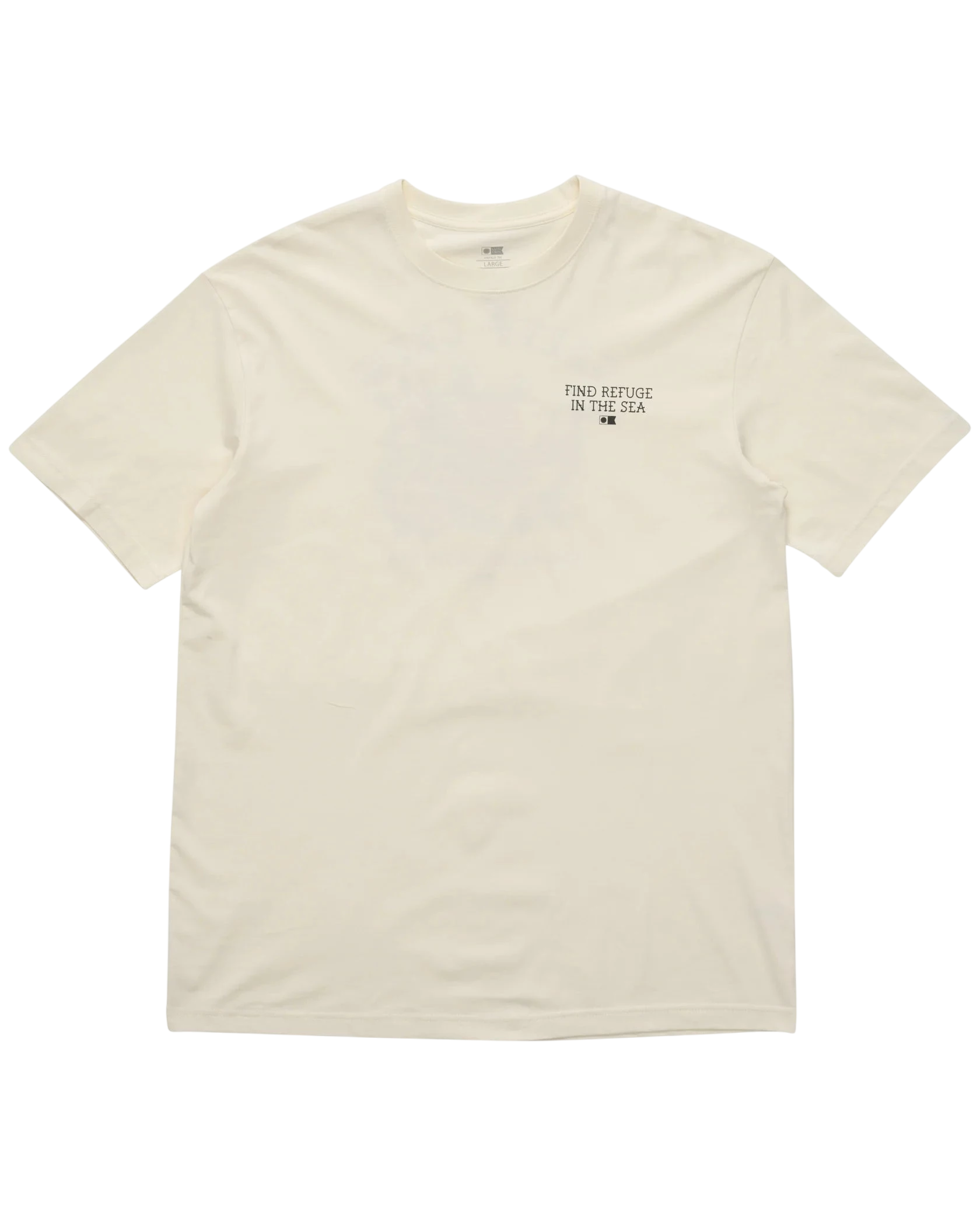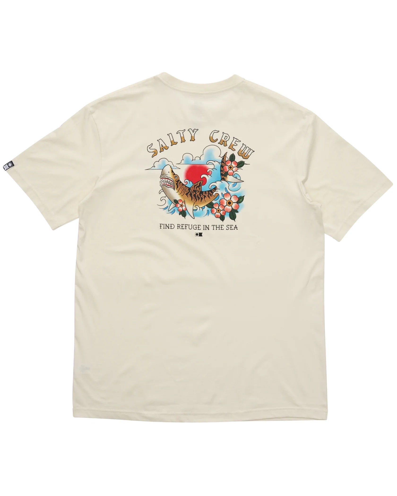 The Old School Vintage Short Sleeve T-Shirt in off-white is crafted from soft, 180gsm ring-spun cotton jersey. It features a Salty Crew label on the sleeve hem and digitally printed graphics on the front and back for a bold, retro-inspired look.