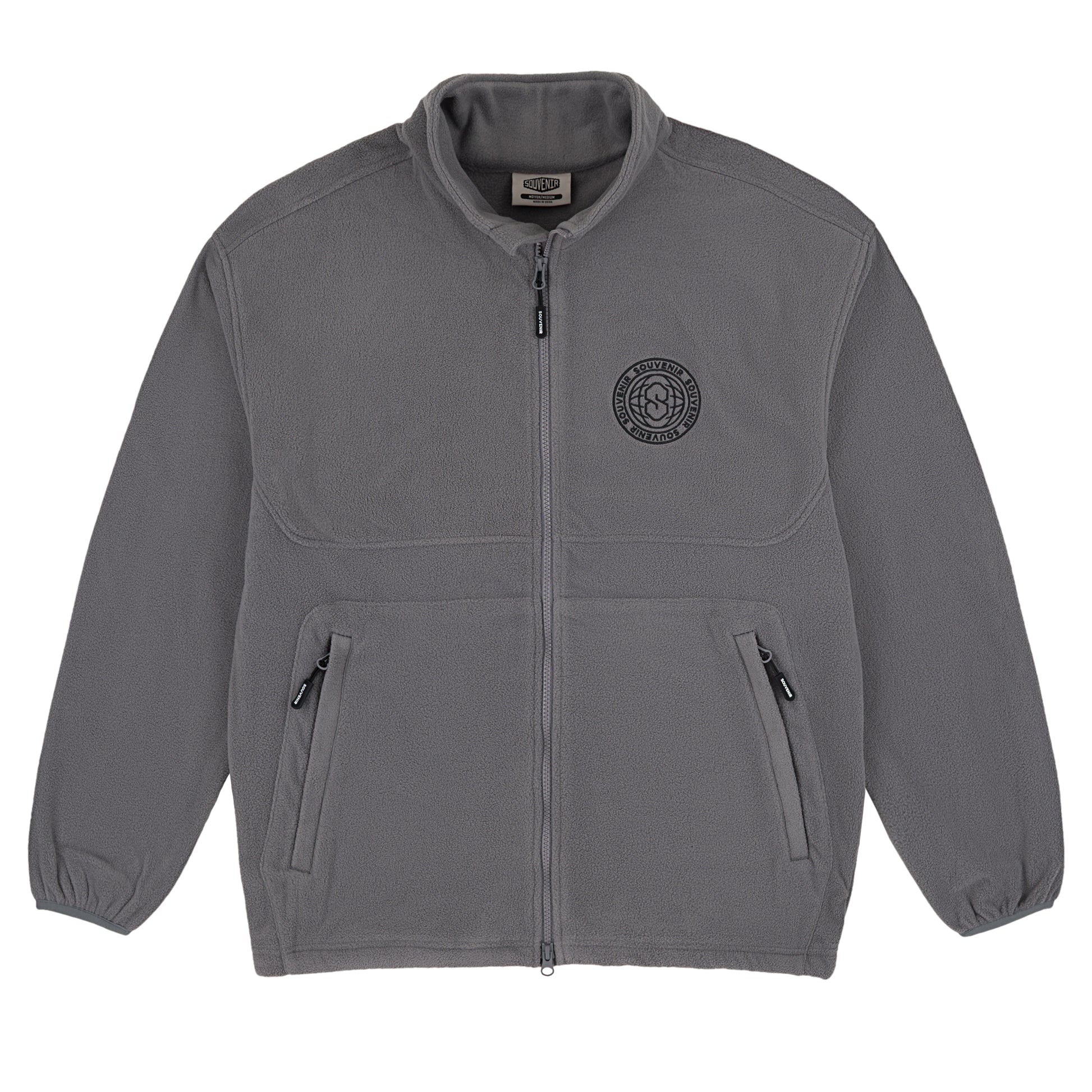 The Souvenir Tech Fleece Zip Up – Cool Grey combines thermal performance with a minimalist aesthetic. Made from 380g technical polar fleece, it provides warmth, softness, and breathability. Its two-way YKK Vislon zipper and zippered kangaroo pocket provide functionality and comfort. The embroidered Souvenir World logo on the chest and the large logo on the back reinforce its visual identity, in a cool gray tone that is as understated as it is striking.