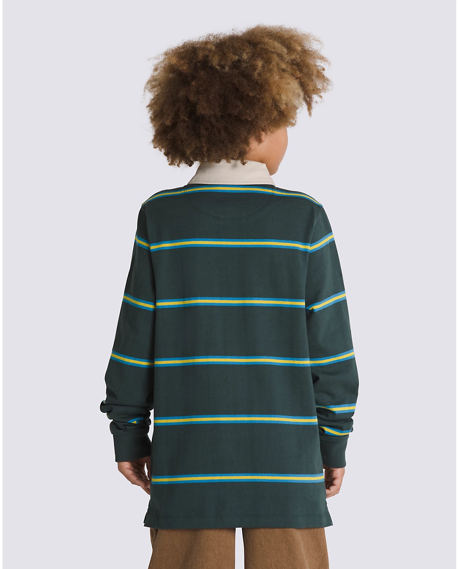 Look good even when your ankle is snapping with the Gatewood Kids Rugby Stripe Long Sleeve T-Shirt, a classic fit long sleeve rugby shirt with stripes, made from heavyweight brushed jersey for breathability and durability.