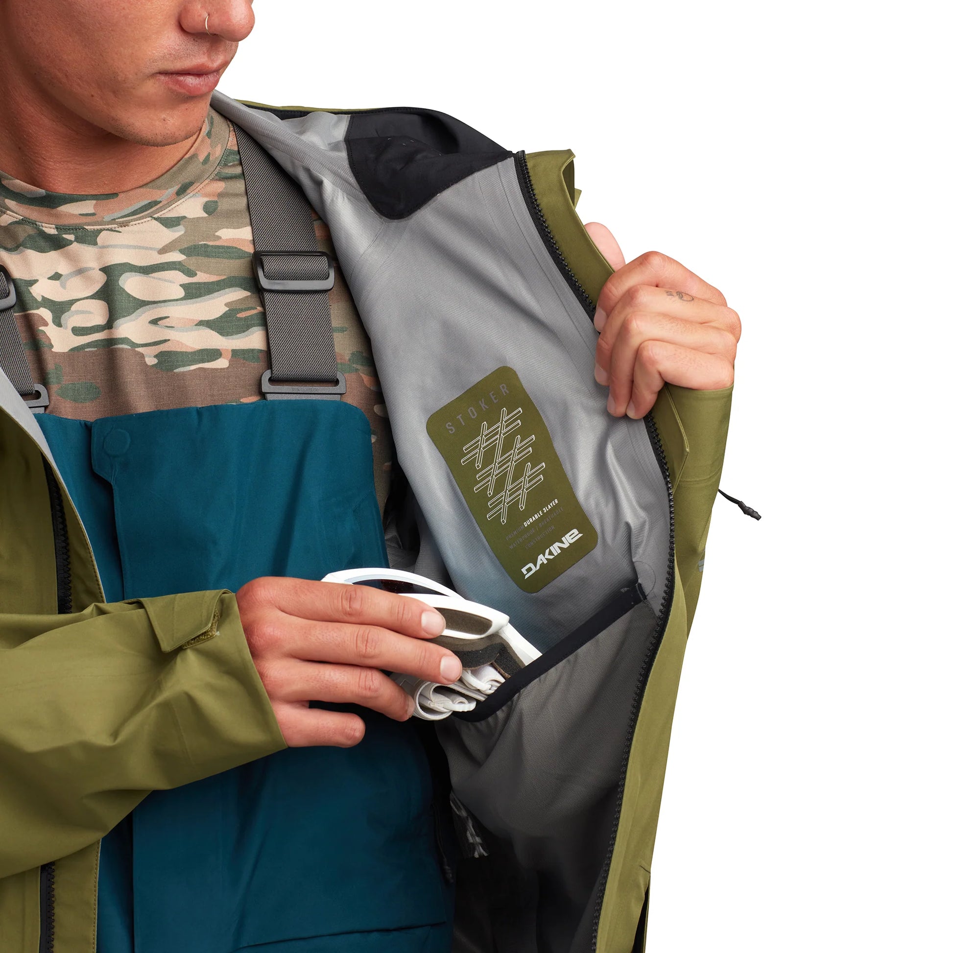 La veste ultime pour toutes les conditions. Composée de polyester recyclé, la veste GORE-TEX Stoker à trois couches vous gardera au sec en descente tout en vous permettant de sécher en montée avec tous les extras dont vous avez besoin et aucun dont vous n'avez pas besoin. Elle est dotée d'une jupe pare-neige, de poches de rangement en filet sur la poitrine et d'une capuche fixe réglable, ce qui en fait la pièce idéale pour l'arrière-pays. Elle est également dotée d'une poche isolée pour appareil et d'une fermeture éclair Aquaguard sur la poitrine qui maintient l'eau là où elle doit être... à l'extérieur.