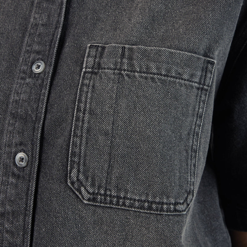 Alliant fonctionnalité et style contemporain, la chemise en denim cropped pour femme de Dickies, en coloris black wash, se distingue par sa coupe boxy et sa longueur courte. Confectionnée en denim 100 % coton avec une finition sablée, elle offre une texture douce et un confort durable. Dotée de manches mi-longues évasées, de poches poitrine en biais et d’une fermeture boutonnée, elle assure une grande liberté de mouvement avec une touche urbaine affirmée.