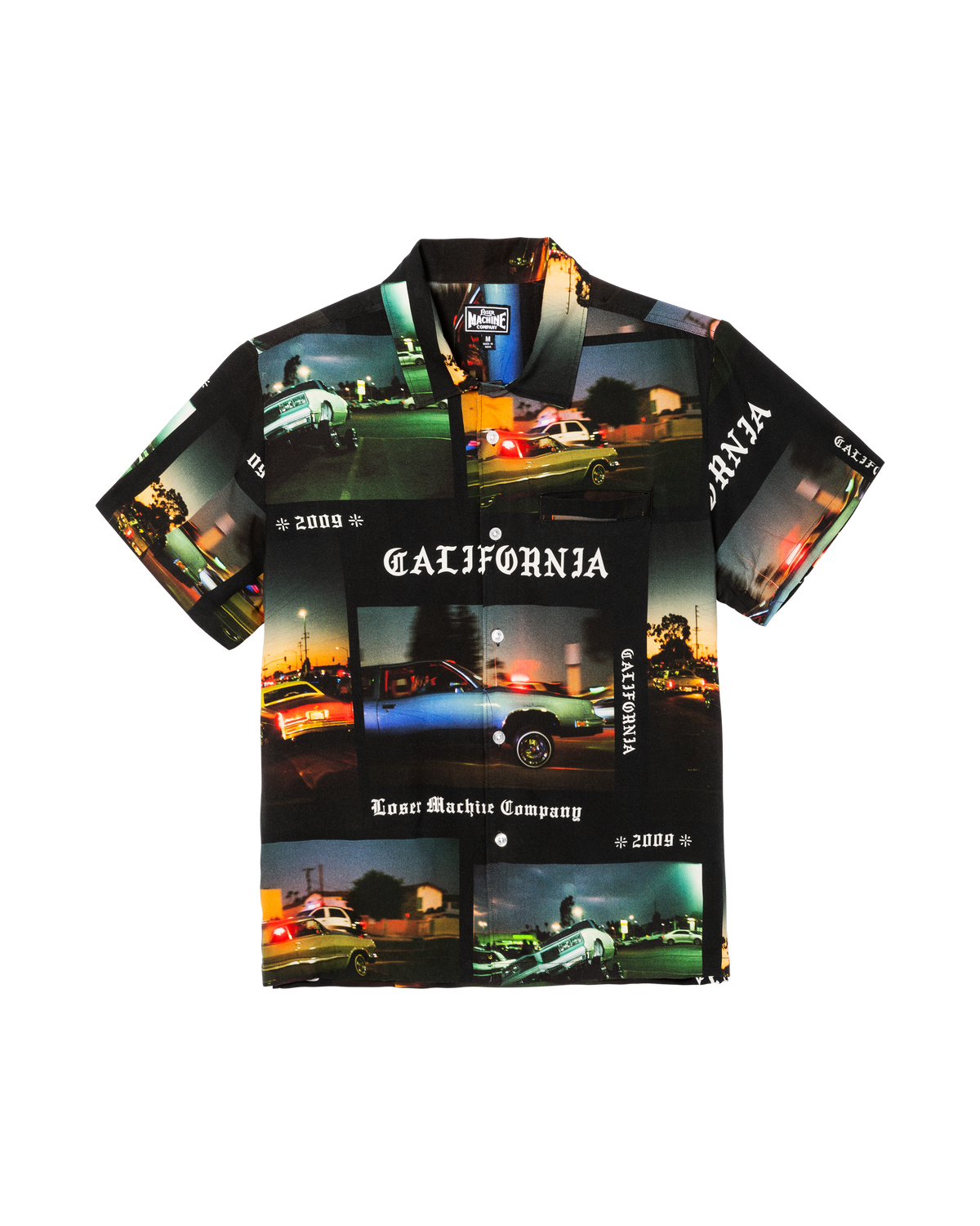Affichez un style audacieux avec cette chemise à motifs signée Loser Machine. Inspirée de l’univers lowrider californien, elle présente des clichés de voitures customisées de nuit, dans une ambiance urbaine rétro. Sa coupe droite et son col camp offrent un confort décontracté, tandis que son design tout en imprimé ne passe pas inaperçu. Parfaite pour ceux qui veulent affirmer leur personnalité avec une touche underground.