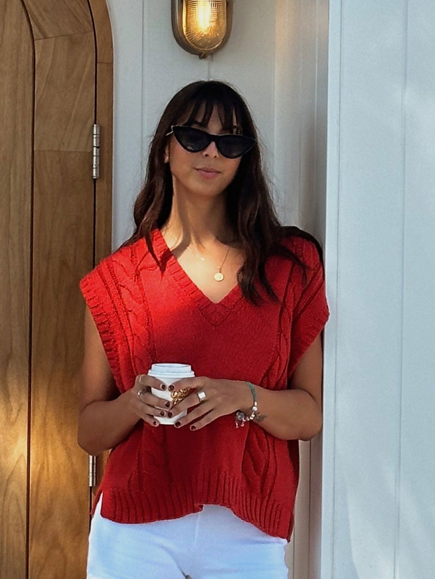 Le Stanley Cable Knit Vest de Rhythm revisite le pull sans manches avec une touche décontractée et texturée. Son tricot torsadé épais et ses détails en maille verticale lui confèrent un charme vintage, tandis que sa coupe ample et relâchée en fait une pièce parfaite pour les superpositions. Les coutures côtelées sur les côtés apportent structure et confort. Idéale pour les soirées fraîches en bord de mer ou pour ajouter une touche cozy à votre tenue.