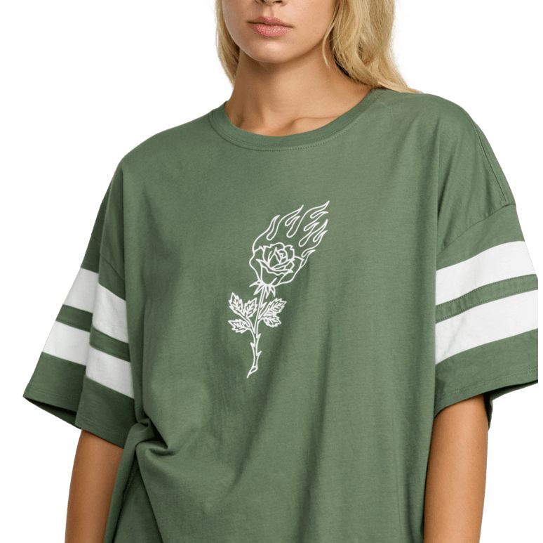 Le t-shirt RVCA W KSL Baggie en coloris Fir Green adopte une coupe oversize pour un look décontracté et moderne. Confectionné en 100 % coton, il garantit un confort naturel au quotidien. Son imprimé graphique sur le devant ajoute une touche d’identité visuelle typique de la marque. Idéal à associer avec un jean ou un short pour un style urbain et sans effort.